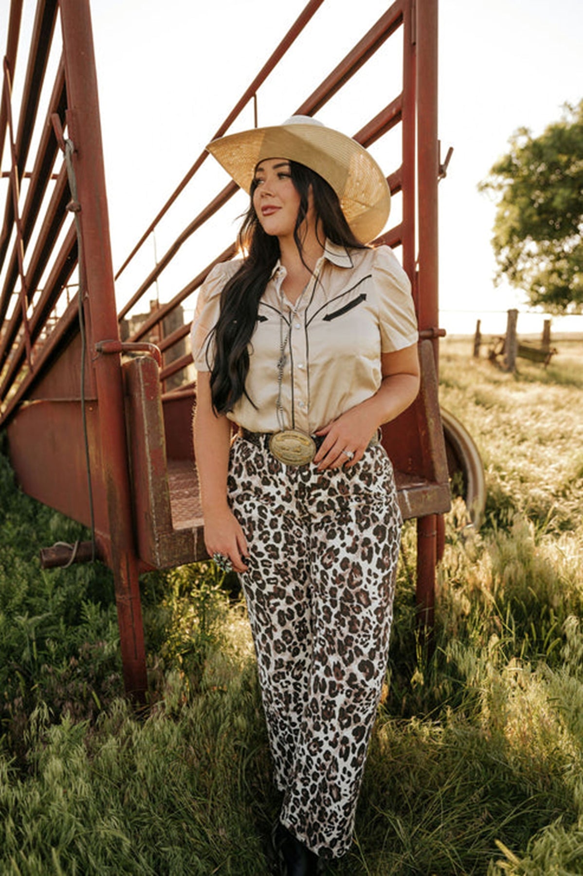 Rock this beautiful Ivory Satin Pearl Snap Shirt by Howdy Hanny!