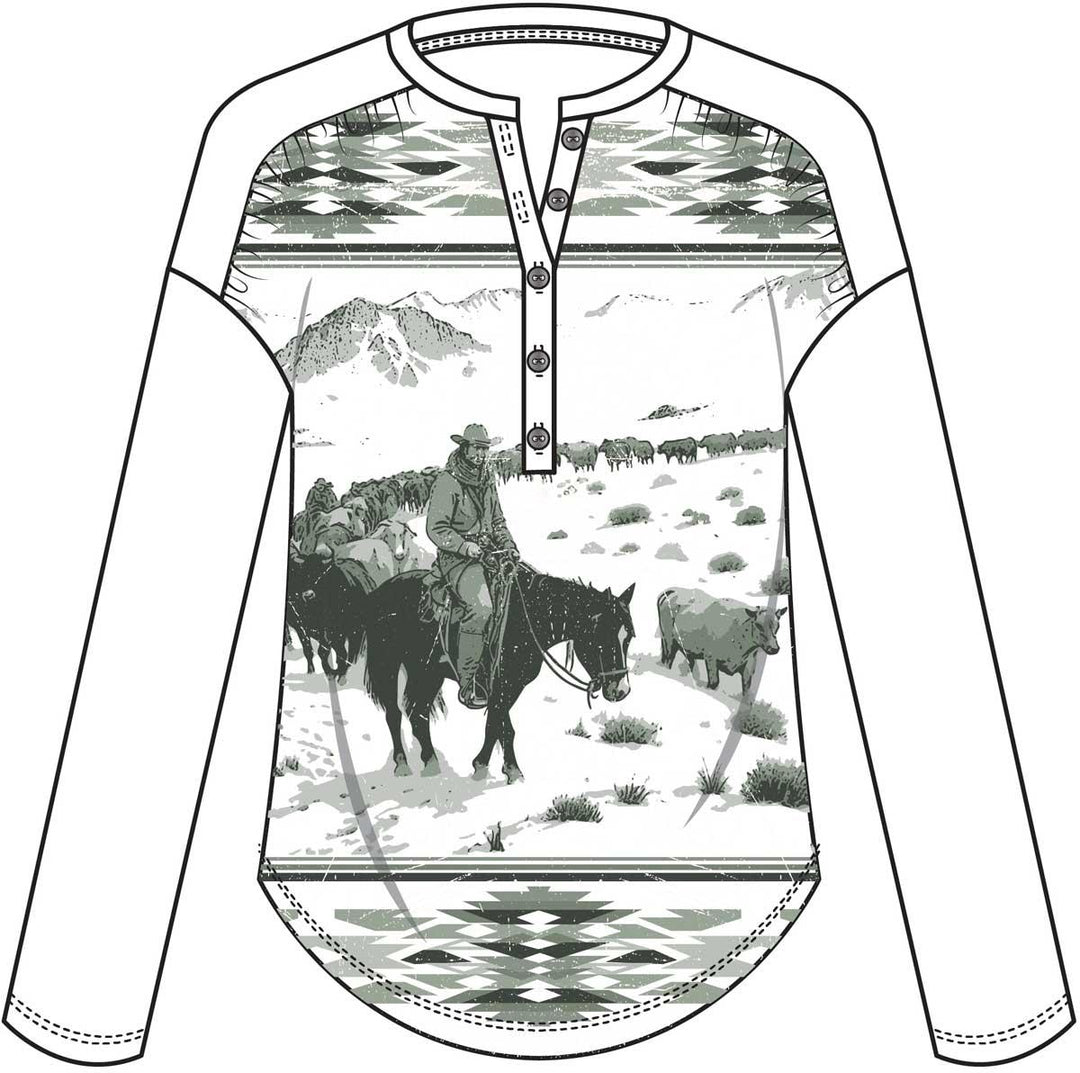 Cruel Women's Cream Western Range Print Henley