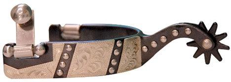 Men's Western Black Steel Spurs with Engraved Overlay and Dots