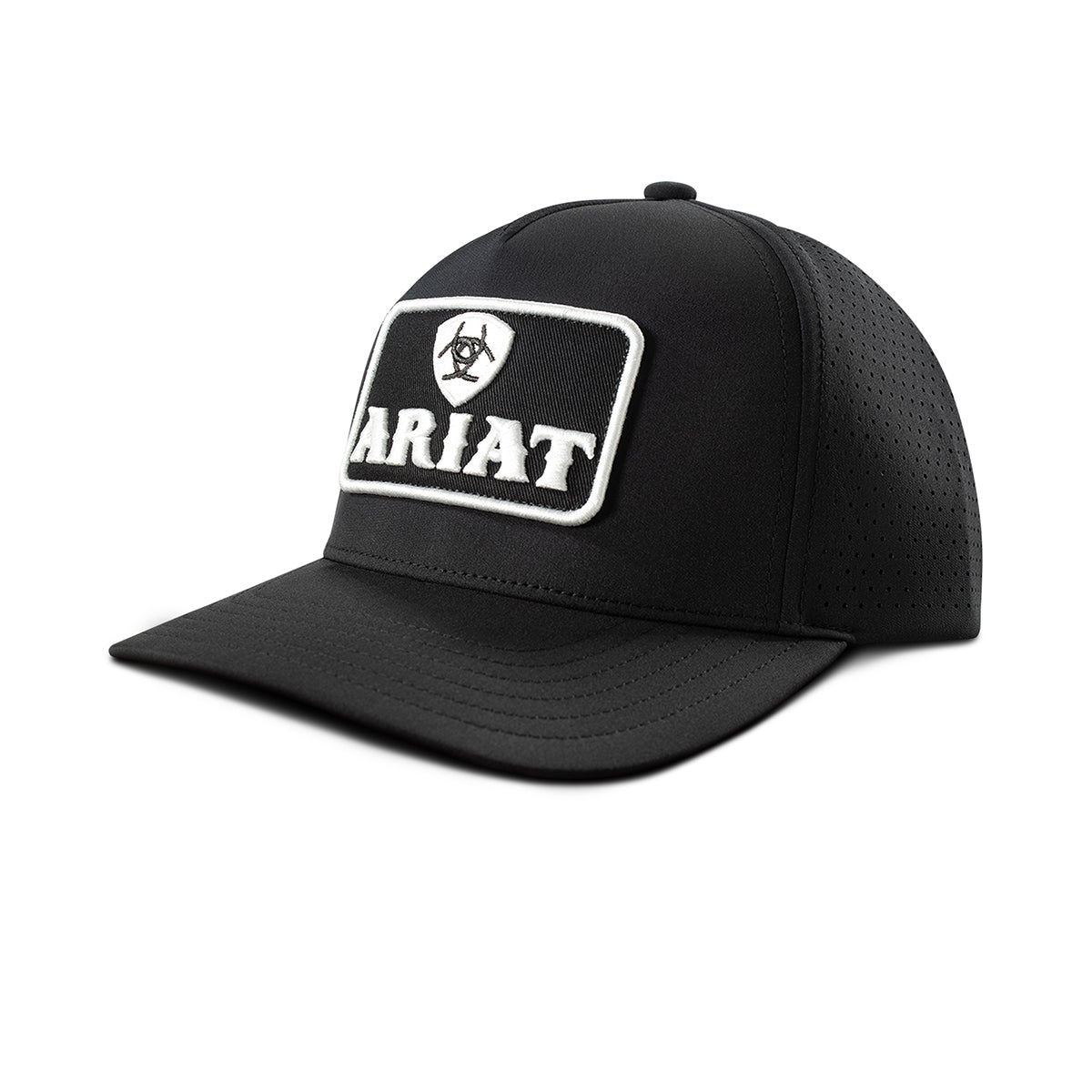 Ariat cap by M&F Western Products. Black front panel and bill with a 3D embroidered Ariat patch. Black mesh back with a snap back closure for that perfect fit.
