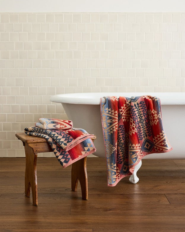 Extra-plush terry velour bath towel is sheared to a velvety softness on one side, looped for superior absorbency on the other. Thick and luxurious, this striking jacquard towel is specially woven to keep its rich color, wash after wash.