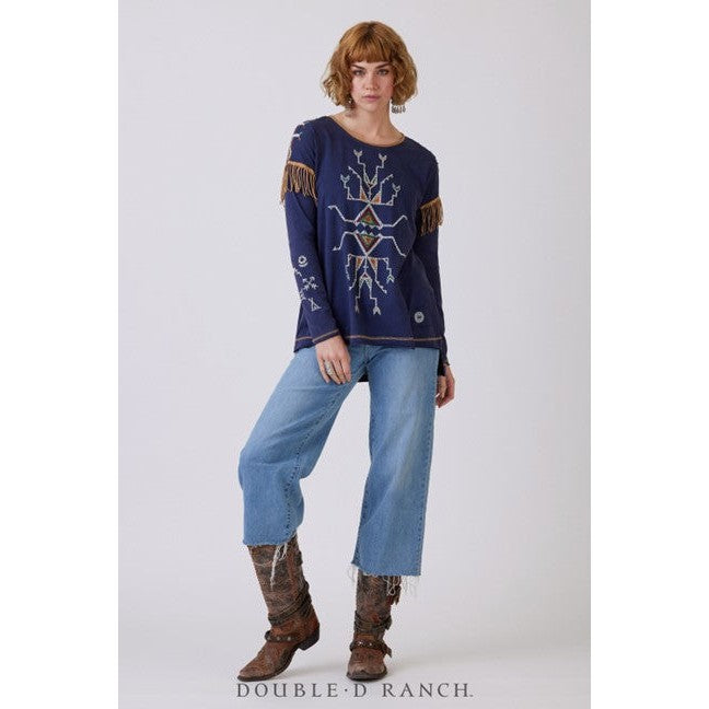 Double D Ranch, the premier lifestyle brand of the West, has designed and manufactured women’s apparel since 1989 with the introduction of their famed Native American blanket coat. While the brand’s aesthetic is often difficult to summarize in a few words due to its unique nature, some have referred to the look as a blend between bohemian, cowboy and Native American heritages. The fashion award-winning label, worn by rock stars and celebrities such as Aerosmith’s Steven Tyler, produces multiple collections a year featuring embellished biker jackets, hand-embroidered tees, and more.