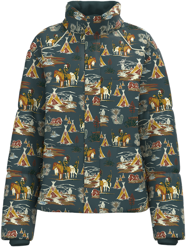 Hooey Women's Blue Comanche Print Bramble Puffer Jacket