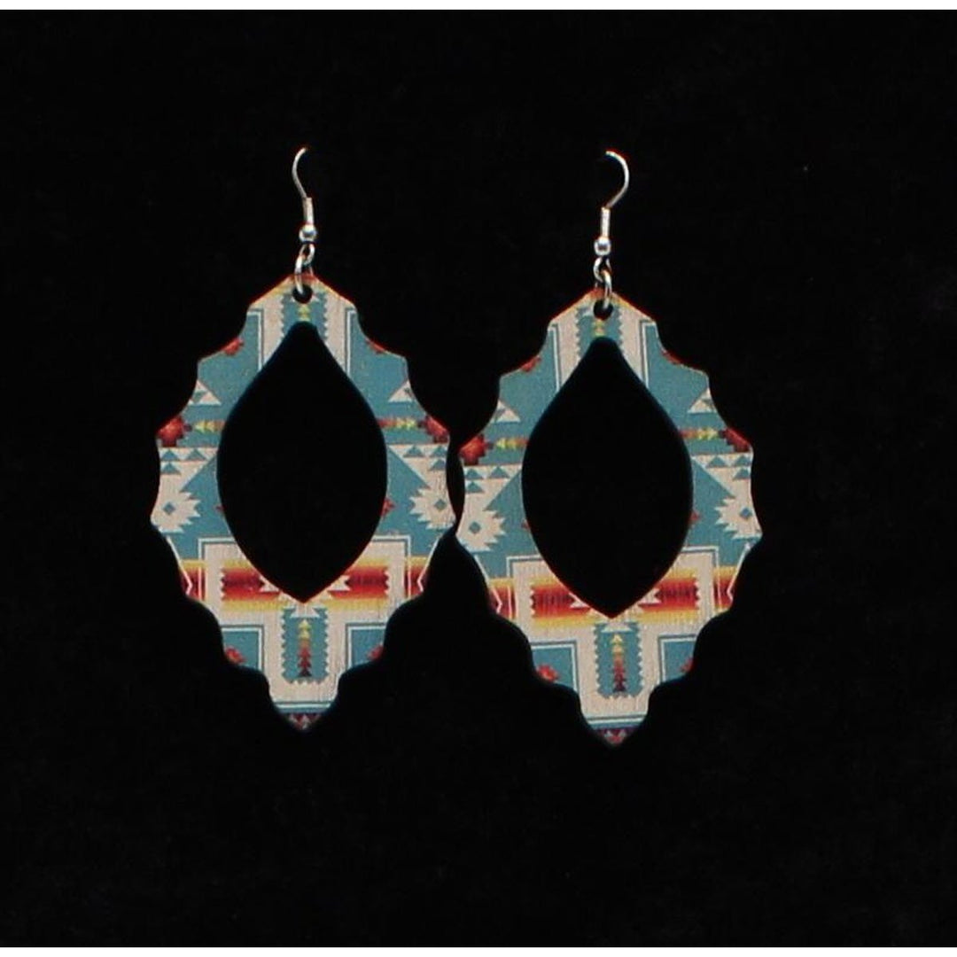 M&F Western Silver Strike Turquoise Aztec Wood Earrings