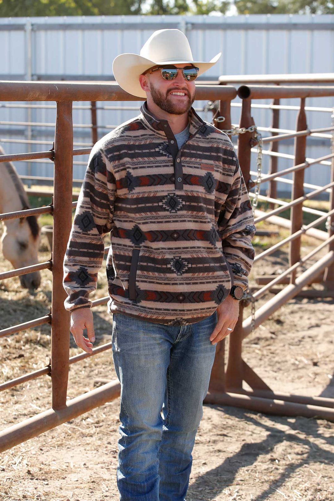 Cinch Men's Brown Stripe Polar Fleece Pullover