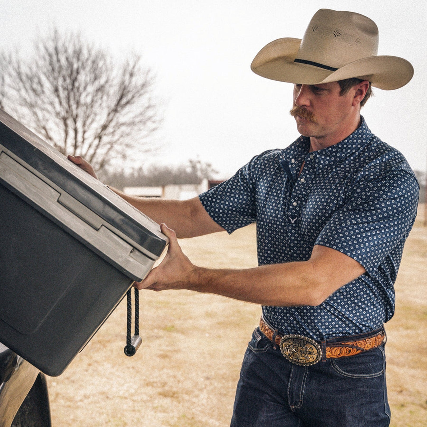 Modern performance polo with authentic Western construction.