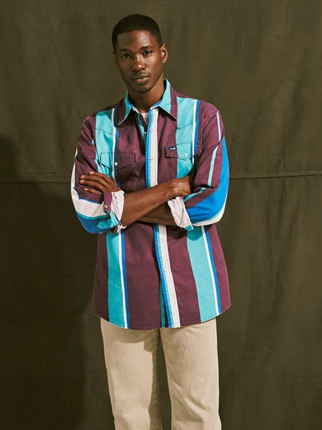 Wrangler Men's Aubergine Teal Vintage Brushpopper Snap Work Shirt
