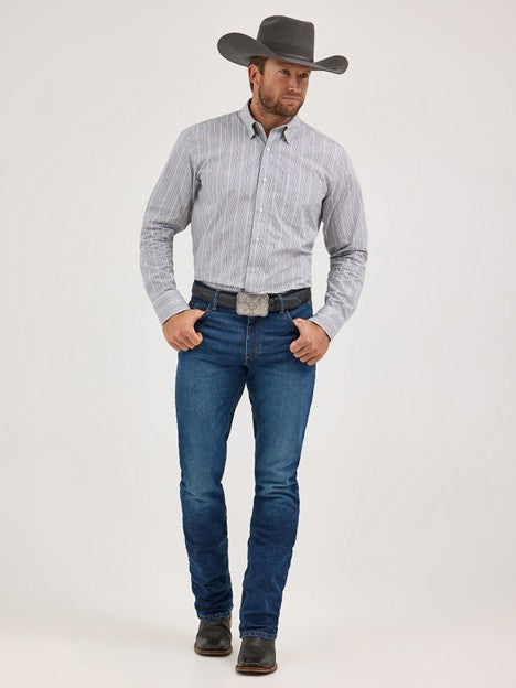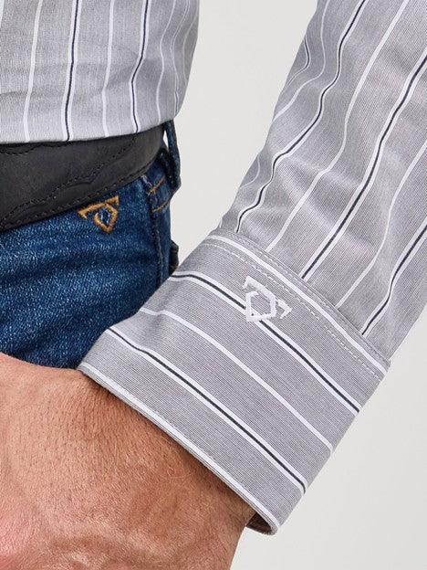 Wrangler Men's Charcoal Stripe Cody Johnson One Pocket Button Down Shirt