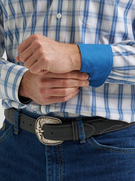 Take the spotlight in style wearing the George Strait™ One-Pocket Button-Down Shirt. This long-sleeve button-down features a straight back yoke, one chest pocket, and adjustable cuffs. With its relaxed fit, this classic collared shirt offers plenty of room through the shoulders and torso. Plus, it comes in a wide variety of colors and patterns.