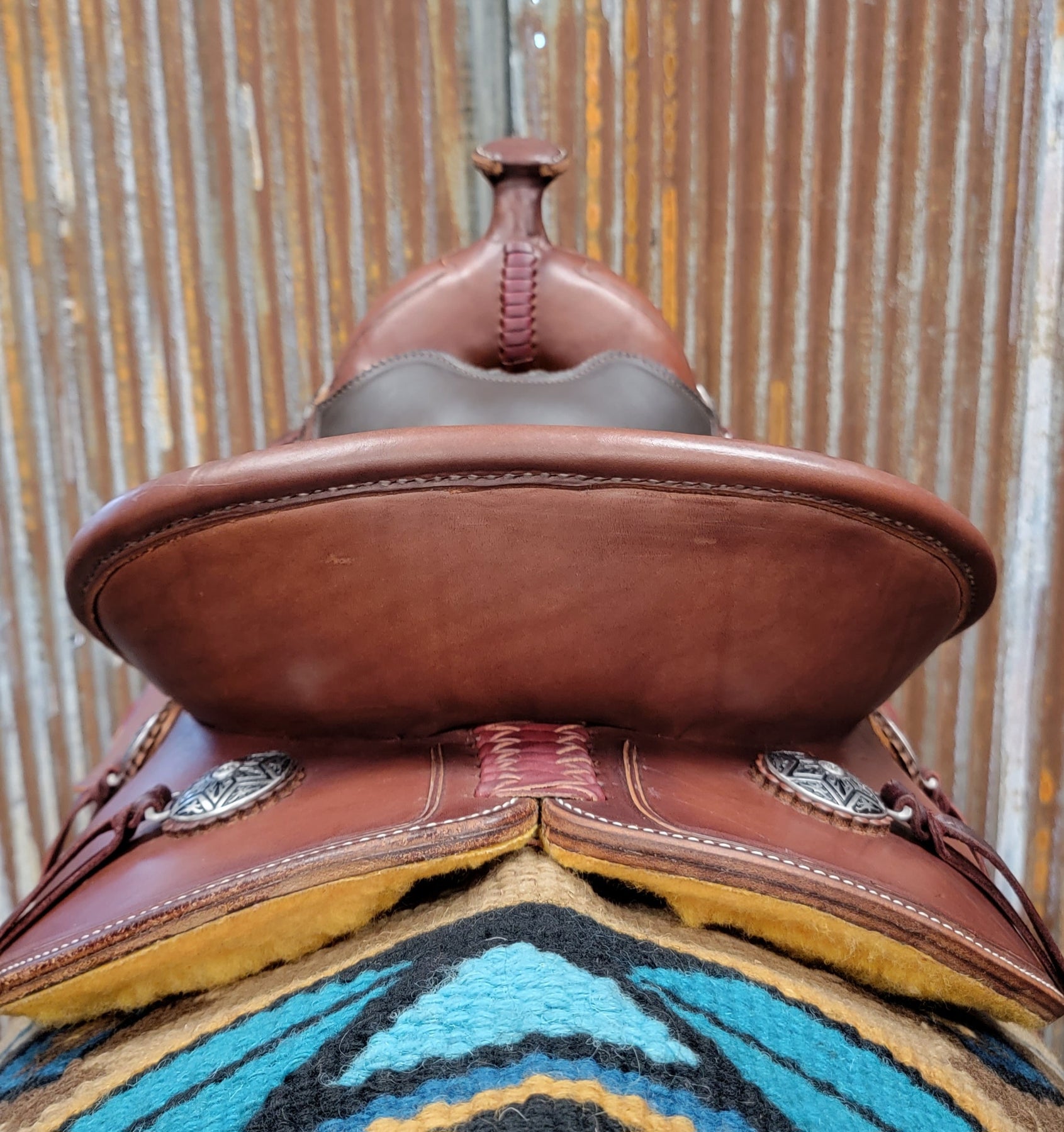 - Cantle: Height 4", Width 13", Dish 1 1/2". Style 1/2" Pencil Roll. Hand Sewn.