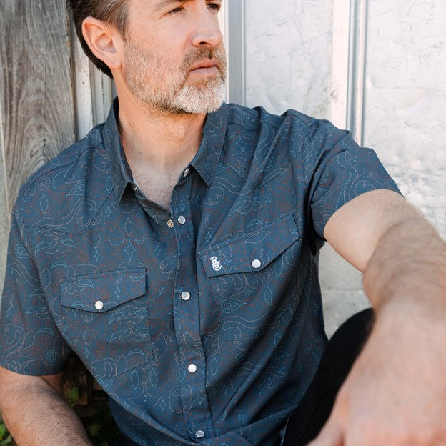 Raised By Coyotes Men's Cowboy Threads Pearl Snap Short Sleeve Shirt