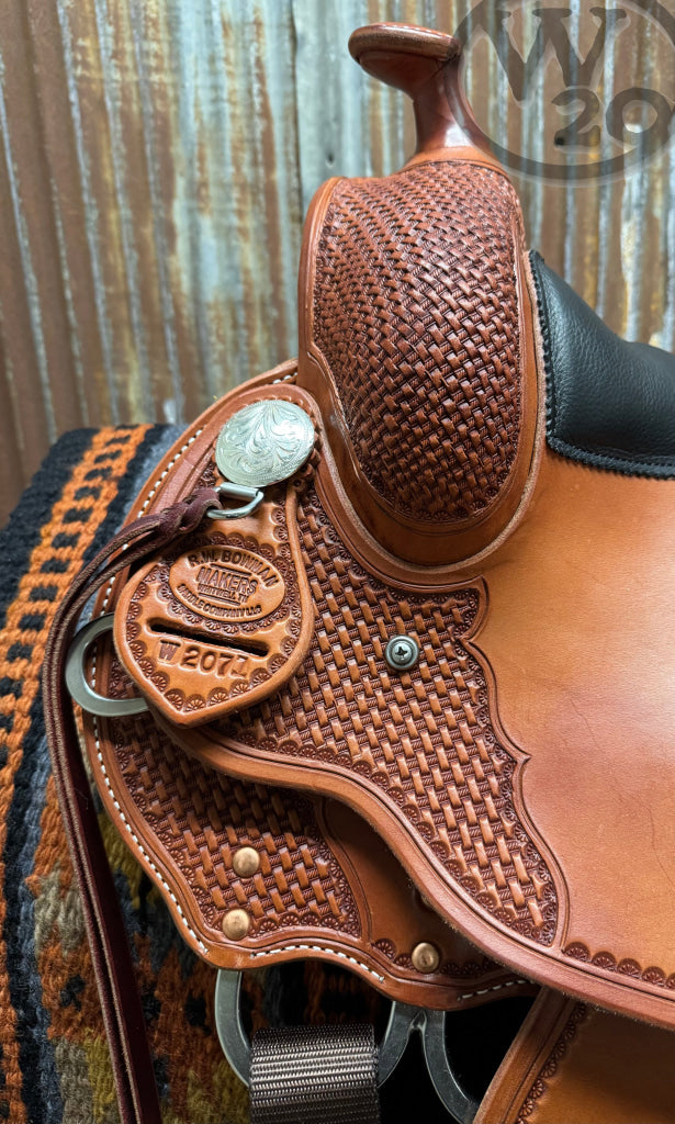 • Finish: Heavy Oiled Chestnut Leather with Basketweave Hand Tooling and Pre-turned Fenders