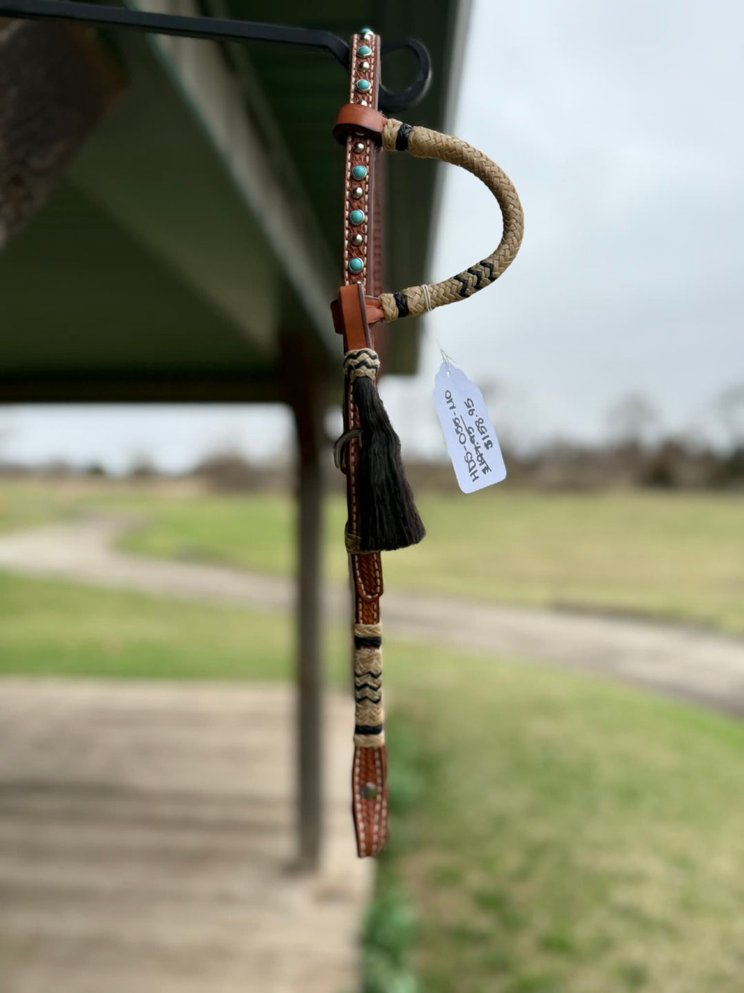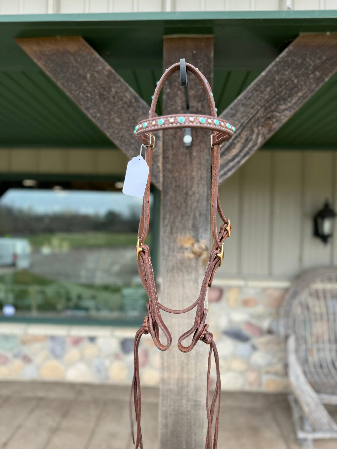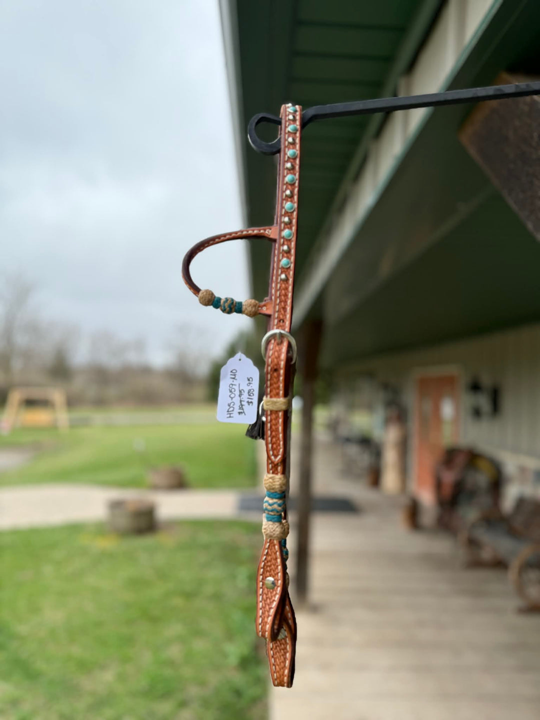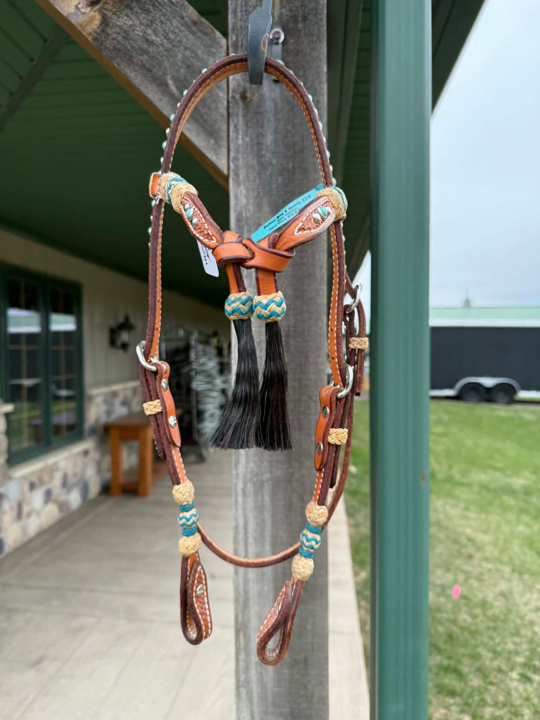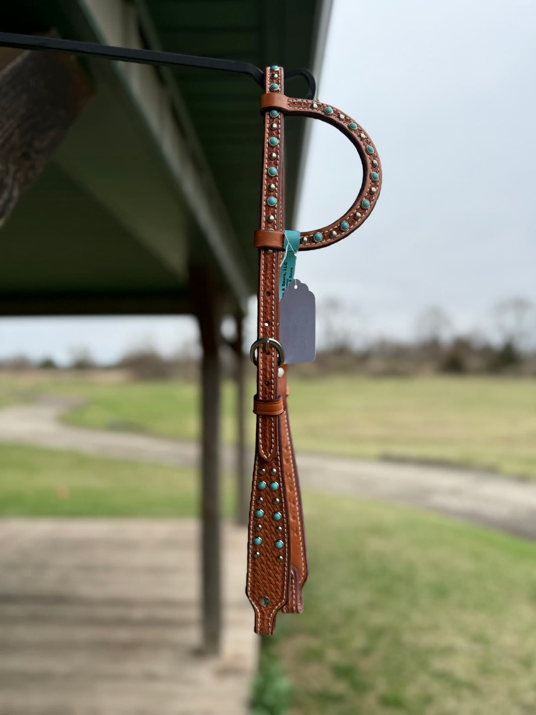 Dutton Bits Tie Front Basket Stamp Browband Headstall with Turquoise Accents