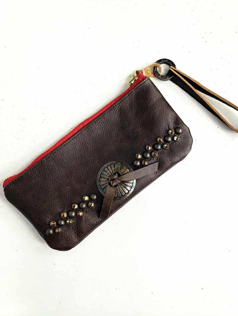 KurtMen Cognac Suede with Bronze Concho Wristlet