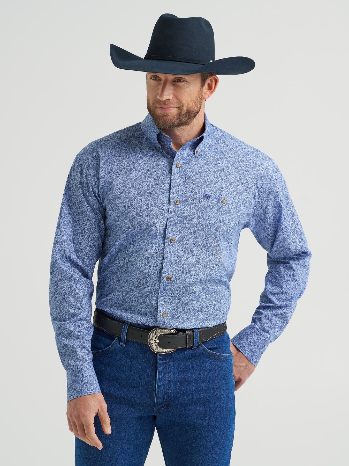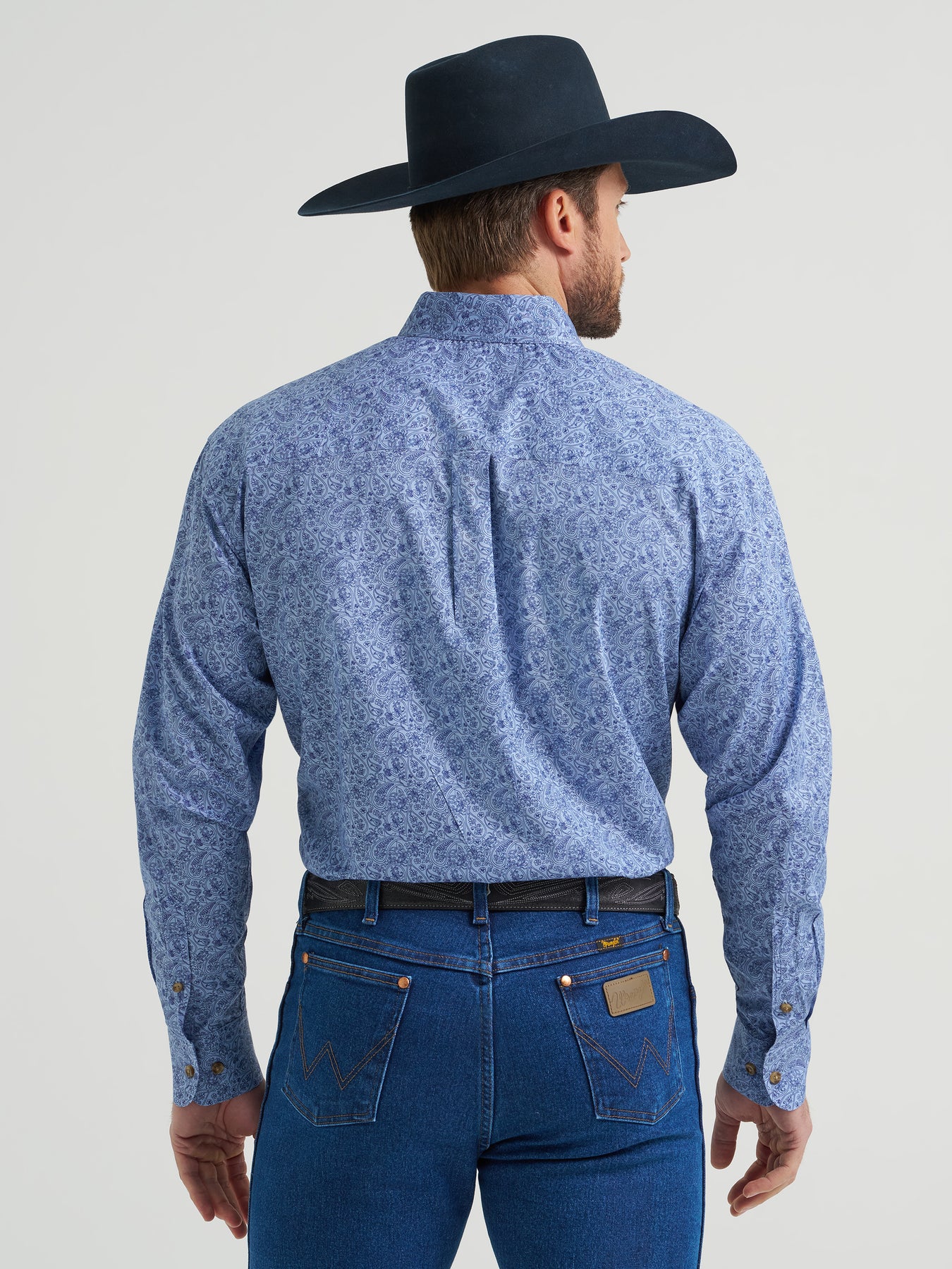 Long Sleeve, Button-down Collar, Straight Back Yoke with Box Pleat, One Button Through Pocket, Two Button Adjustable Cuff, Easy Care.